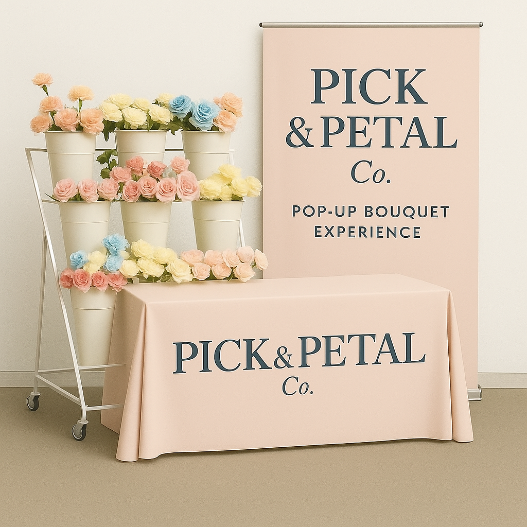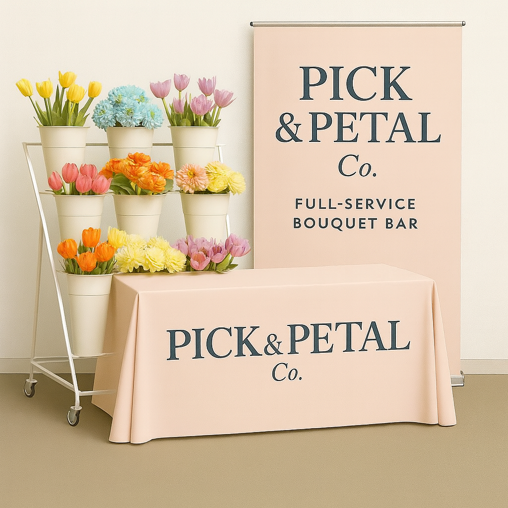 A chic, custom bouquet bar for markets, coffee shops, boutiques, and local pop-ups.